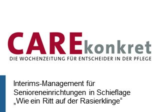 Wir bieten Interims-Management und betriebliche Beratung von Einrichtungen im Senioren- und Gesundheitswesen.